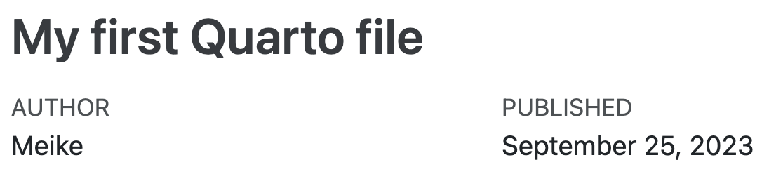 .qmd)Create, you should then see the following in your editor window:.qmd)File -> Save,We create the html file by rendering the .qmd file.